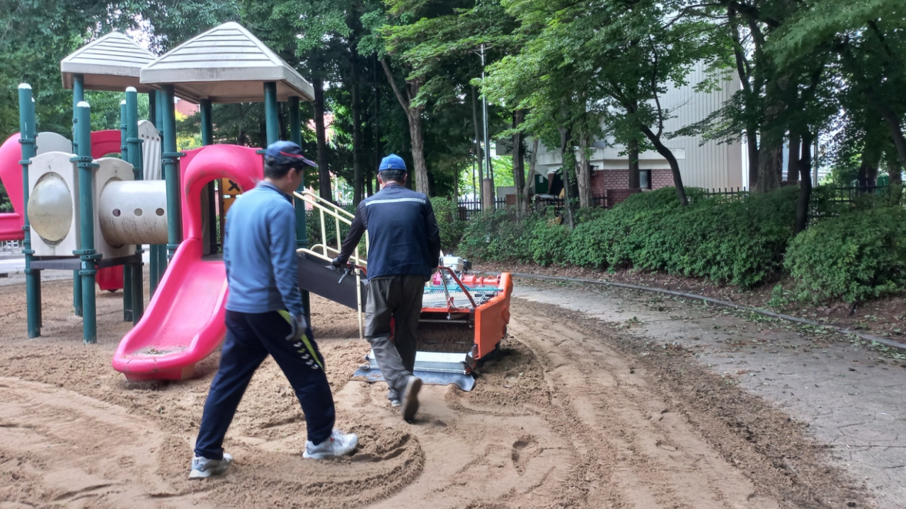 놀이터 모래는 외부 환경에 그대로 노출되어 있어